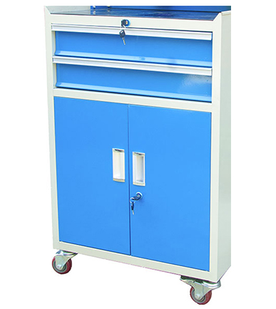 2、标准型工具车是由各种型号的工具柜增加顶框和底部脚等移动部件而组成。